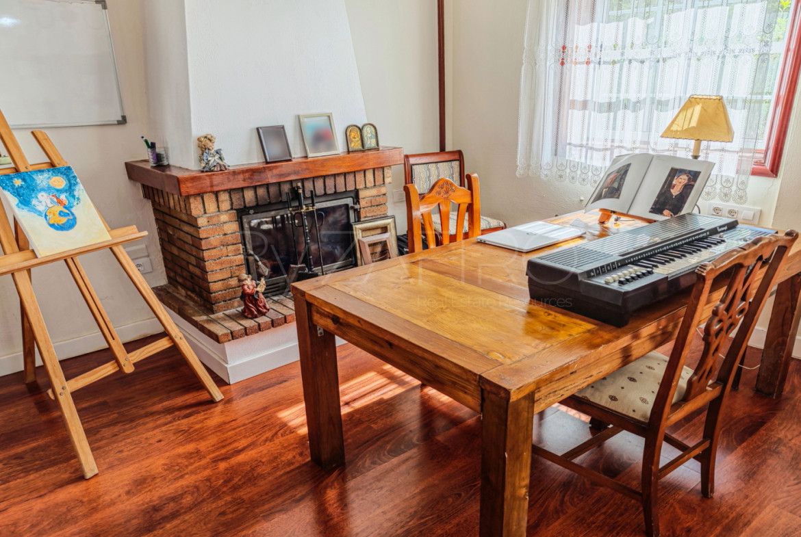 En la planta baja de 137 M2 , la vivienda ofrece una distribución cómoda y muy funcional. Destaca una cocina amplia y luminosa, con salida directa al jardín, así como a la zona de aparcamiento que tiene capacidad para tres coches y a la barbacoa, lo que crea una conexión muy práctica entre el interior y los espacios exteriores. El salón-comedor, con chimenea, ofrece un ambiente acogedor y con carácter ideal para reuniones familiares ó momentos de descanso. Completa esta planta una estancia polivalente, que puede destinarse a dormitorio, sala de estar ó despacho y que dispone de chimenea y baño propio.